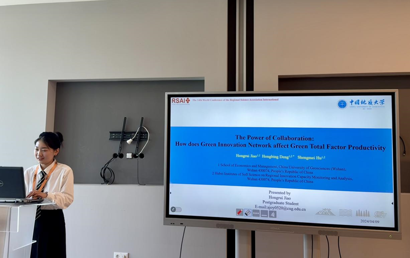 2024年4月8日-11日,国际区域科学协会第十四届世界大会在匈牙利召开,Beat365官网应用经济学博士生焦弘睿参会,并代表所在的邓宏兵教授团队在分会场宣读论文《The Power of Collaboration: How does Green Innovation Network affect Green Total Factor Productivity》。