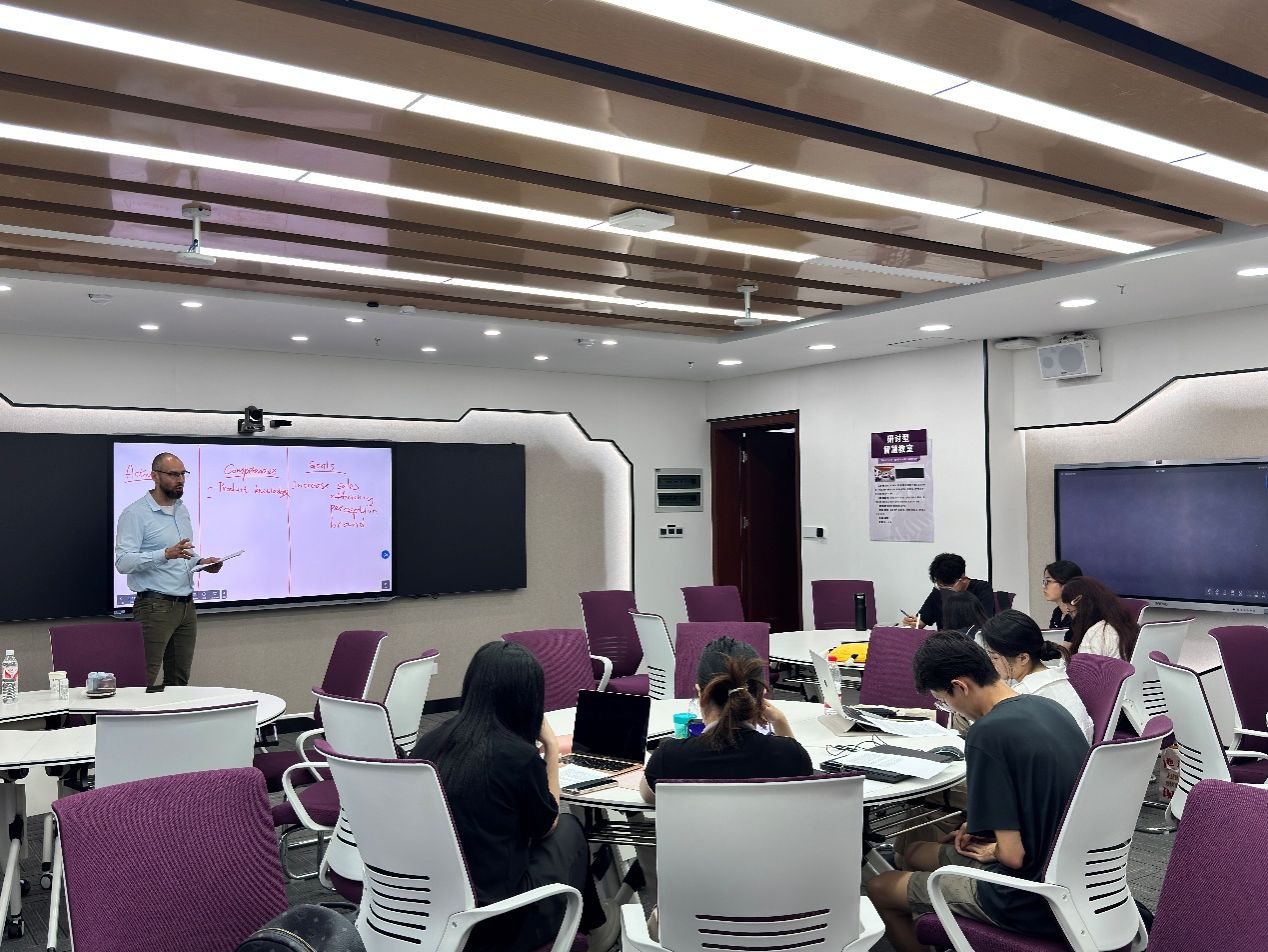 6月10日,DMITRIEV博士在经管学院智慧教室授课。他结合胜任力模型、T型技能及70-20-10学习法则等前沿理论,引导学生通过真实案例分析企业战略目标设定、学习需求评估及学习型文化建设。课堂采取互动研讨方式帮助学生掌握管理模型的实际应用,培养全球化视野与创新思维。