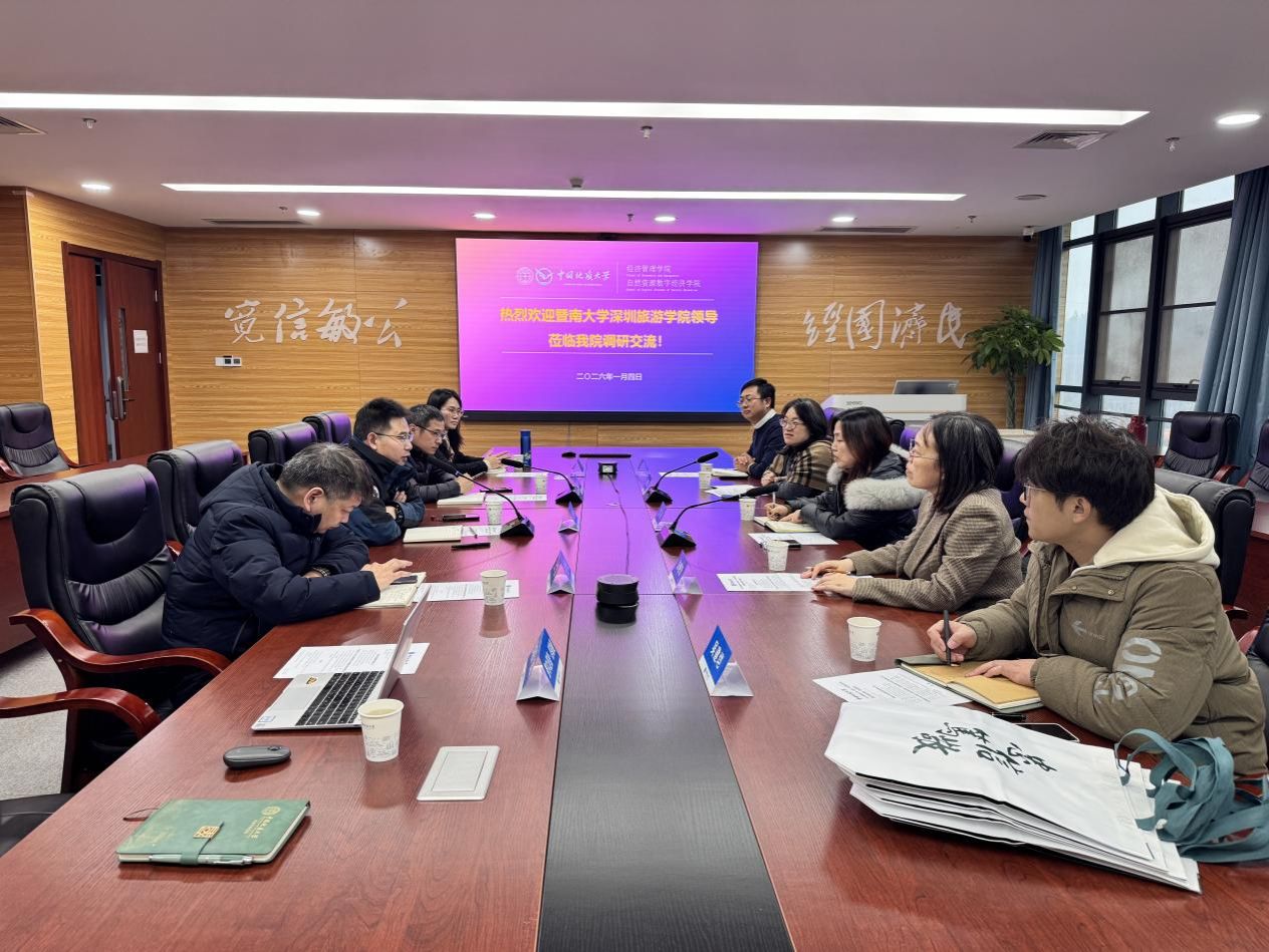 (通讯员:努尔夏提·居勒提 李琳)1月4日下午,暨南大学深圳旅游学院院长文吉教授一行来访Beat365官网调研交流。院长於世为教授主持座谈,双方围绕数字经济背景下的学科建设、人才培养及合作办学等议题展开深入探讨。
