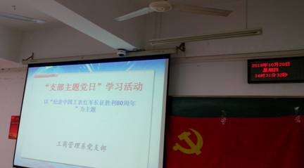 按照学校党委的要求,系支部书记王萍首先组织师生起立齐唱国歌,师生党员在党旗下一起高声诵读入党誓词,集中学习《党章》第一章,交纳10月份党费。结合“纪念中国工农红军长征胜利80周年”的主题,学习了光明日报特稿:铸就民族热血丰碑的英雄史诗,并开展了讨论。师生一致认为树立坚定的共产主义信念是非常重要的,我们要继承和发扬长征精神,走好新的长征路。