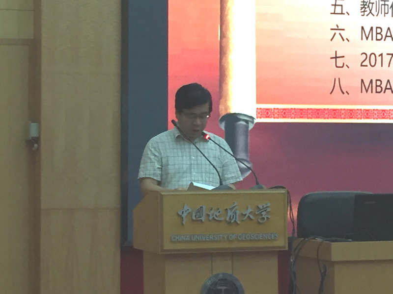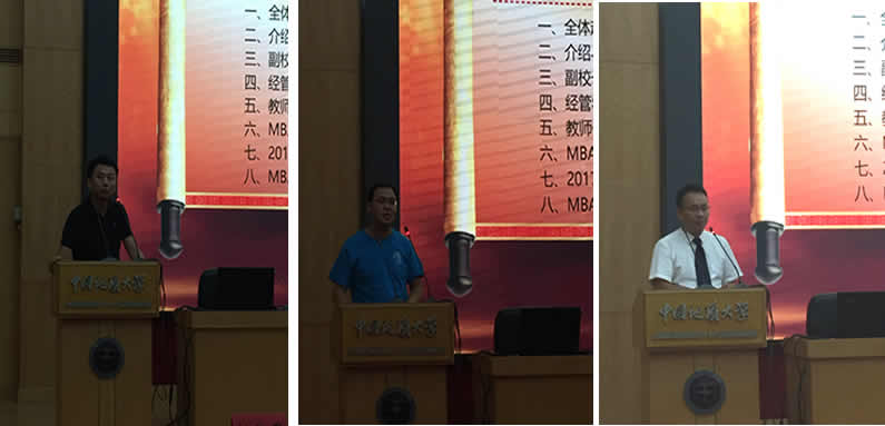 地大MBA优秀校友代表赵千里,结合自身求学经历和创业经验作交流发言。 2017级MBA新生陈建伟同学,代表全体新生做三点表态: 一是要做一名“三好学生”;二是敢闯敢想,但要脚踏实地;三是要传承好母校艰苦朴素的优良传统。 MBA联合会主席段捷就MBA联合会的相关情况作经验交流。