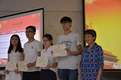 以日常工作、申报材料、现场答辩展示为依据,经过公开公平公正的选拔,当场产生了四个,分别是会计学专业本科生党支部、工商管理专业本科生党支部、国贸统计专业本科生党支部、经济学专业本科生党支部。在学生自主申报、学院党委审核考察基础上,评选出了“十佳本科生共产党员”,分别是:曹彩霞、柴晓慧、郭永祯、韩文文、胡佩琪、康清、陆丽、王美琦、张钊铭以及郑静静同志。隋红书记和沈波副书记分别为“先进本科生党支部”和“十佳本科生共产党员”颁奖。