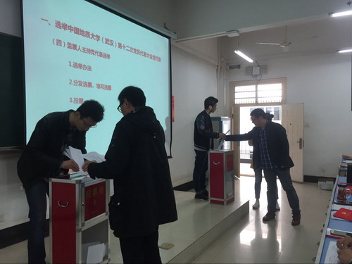 Beat365官网于2017年11月2日下午在综合楼204召开了教工全体党员和学生支部书记参加的党员大会。本次党员大会分两个环节进行,第一个环节是选举经管学院出席学校第十二次党员大会的党代表。根据《关于Beat365唯一官方网站党委出席中共Beat365唯一官方网站(武汉)第十二次党员代表大会代表候选人预备人选的批复》文件精神,在充分发扬民主,广泛酝酿讨论的基础上,采用差额选举的办法,选举产生了Beat365唯一官方网站出席中共Beat365唯一官方网站(武汉)第十二次党员代表大会代表11位同志。