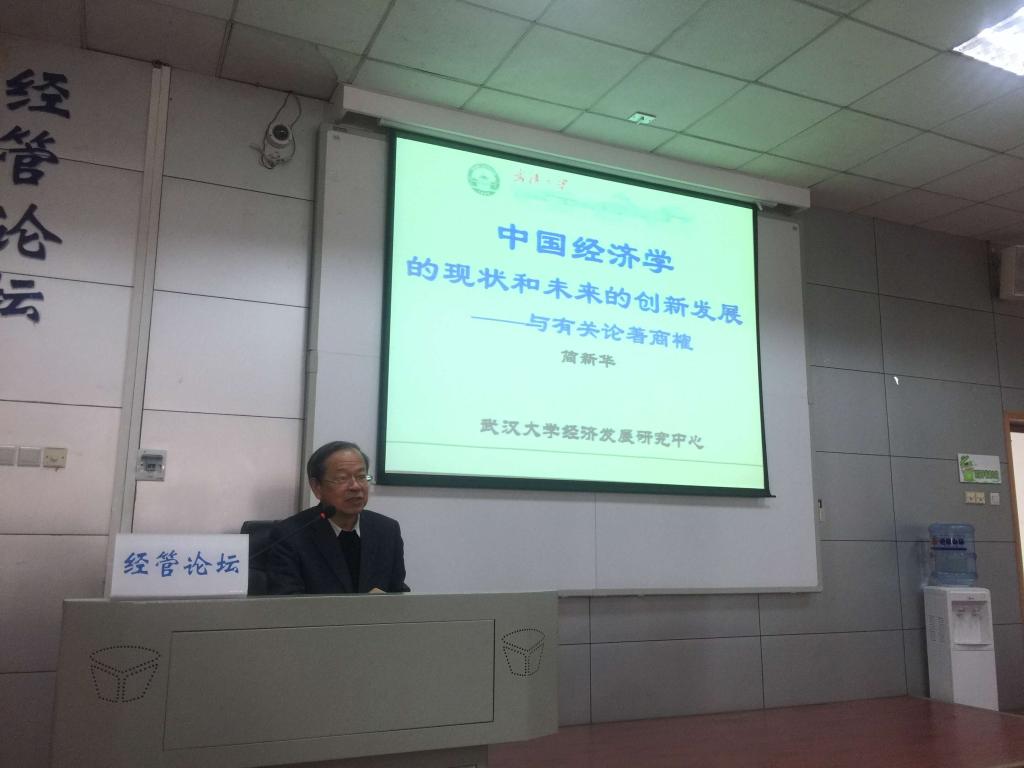 2017年12月8日下午14:30在MBA楼成功举办了第176期经管论坛,本次论坛我们诚挚邀请了武汉大学经济与管理学院的简新华教授,本次论坛主题为“中国经济学的现状和未来的创新发展——与有关论著商榷”。经管学院副院长王开明教授和学院的老师同学一起参加了本次经管论坛。