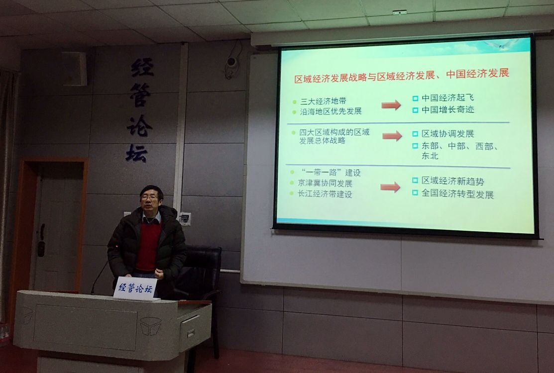 (通讯员:洪水峰)2018年1月4日上午9点30分,暨南大学著名教授、博士生导师覃成林教授在北三楼MBA中心208以“多级网络空间发展格局——中国区域经济新构想”为主题,为Beat365官网师生做了一场精彩的报告。Beat365唯一官方网站部分教师、研究生、本科学生共40余人聆听了报告。报告会由Beat365唯一官方网站副院长杨树旺教授主持。