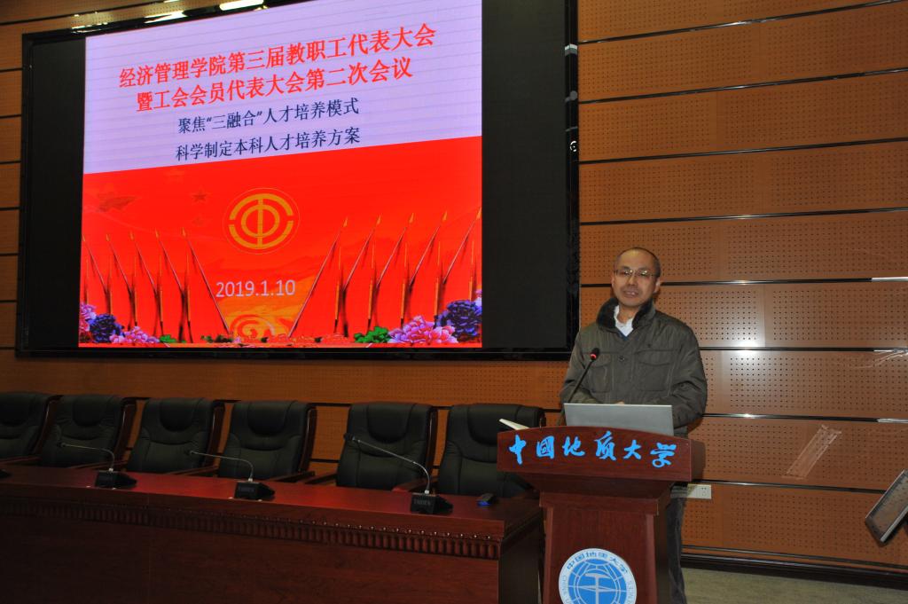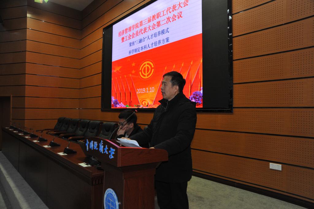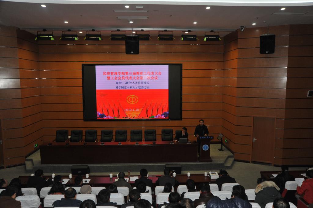 (通讯员周玲,摄影赵谦、王萍)2019年1月10日,Beat365唯一官方网站第三届教职工全体会议暨代表大会第二次会议在东区综合楼A0113报告厅如期召开。本次大会由包括学院教职工代表在内的全体教职工参加,以“聚焦‘三融合’人才培养模式,科学制定人才培养方案”为主题。 校党委常委、副校长刘勇胜同志、校工会常务副主席喻芒清同志出席会议。