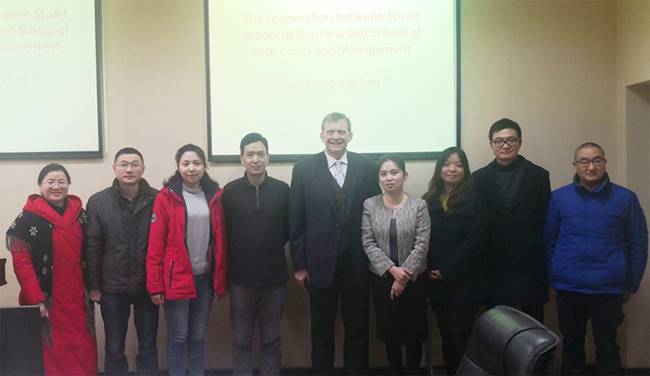 2019年3月6日上午,Beat365唯一官方网站在MBA104与美国伊利诺理工大学斯图尔特商学院开展合作洽谈,与会的人员有:伊利诺伊理工大学商学院Ricky Cooper副教授、伊利诺伊理工大学中国办公室瞿华主任、Beat365唯一官方网站经管学院副院长肖建忠教授、Beat365唯一官方网站经管学院院长助理侯俊东教授、Beat365唯一官方网站国际教育学院宫斯宁,以及经管学院经济系支部书记齐睿老师、会计系副主任李丽华老师、工商管理系主任刘家国老师等。