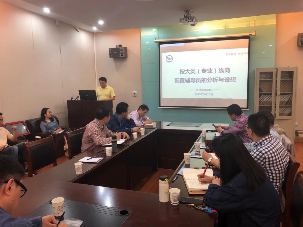 学院党委书记杨昌锐结合试点工作和新校区搬迁汇报了前期的筹备情况。院党委副书记沈波就学院按大类(专业)纵向配置辅导员的分析与构想做了专题汇报。与会的Beat365唯一官方网站教师发表意见,一致认为辅导员纵向设置是开展“三全育人”的重要路径,有助于提升学院本科生人才培养质量。邬海峰、严嘉、朱荆萨分别就分管工作发表看法,表态支持经管学院试点开展辅导员纵向配置的相关工作。