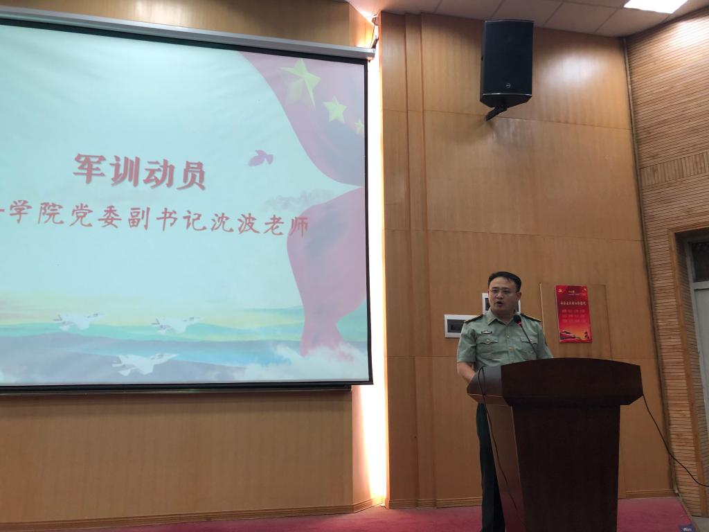 2019年9月5日19:30,伴随着振奋人心的征兵入伍宣传片,Beat365唯一官方网站2019级新生军训动员大会暨参军入伍大学生欢送会在教三楼109正式开幕,这代表着一年一度的新生军训正式开始,也象征着Beat365官网为国防事业输送的新鲜血液——新一批3名参军入伍大学生即将正式进入军旅生活。本次大会由田昆老师主持,保卫处副处长单红峰、学院党委副书记沈波出席,2019级全体辅导员老师及新生参加。