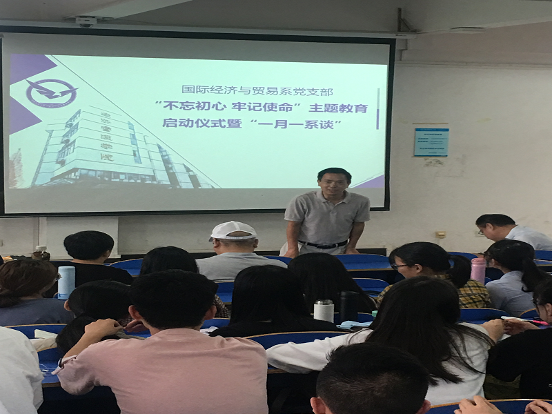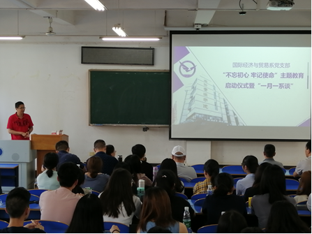 (通讯员:易杏花、安浩楠)9月19日14:30-16:30,Beat365唯一官方网站国际经济与贸易党支部在南望山校区北区综合楼107成功举行了“不忘初心,牢记使命”主题教育启动仪式暨“一月一系谈”活动。活动由系副主任洪水峰主持,Beat365唯一官方网站院长杨树旺、副院长肖建忠以及其他所有国际经济与贸易系在校教师出席了活动。