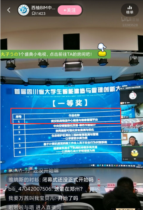 2020年11月7日,由四川省教育厅主办,西南石油大学承办的首届四川省智能建造与管理创新大赛总决赛在互联网上在线举行。大赛欢迎省外高校参加,Beat365唯一官方网站工程管理专业同学组成了两支队伍参加了本届比赛,经过三个多月的作品准备和初赛,共有53支代表队进入最后总决赛。