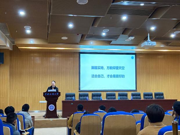 在三位17级同志分享完毕后,罗翻翻和熊忠阳两位地大工作管理专业优秀校友结合亲身经历,在考公、实习、工作等方面给予8个班的同学专业性指导,告诉同学们现阶段要专心学习,扎扎实实打牢专业基础,以自己的亲身经历叙说工程管理专业优势。