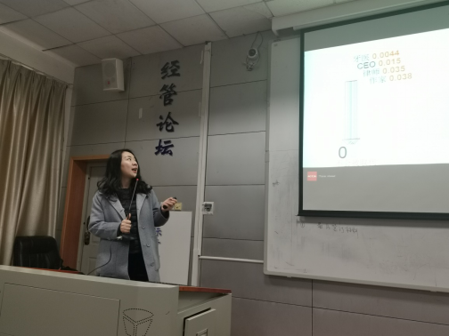 在讲座过程中,郭姝女士借助阿里巴巴集团创始人马云的话:“三十年后最佳CEO可能会成为机器人”,来提醒大家作为财务人员在未来职业道路中可能会面对被人工智能取代的危机和挑战,同学们要未雨绸缪,利用在校学习机会提升学习、沟通、逻辑分析、团队协作等方面的能力,借助ACCA等财会证书、四大国际会计师事务所实习经历和计算机操作技术提升自己的核心竞争力。接着,郭姝女士给我校财会专业的学生提出了几点建议,并鼓励大家充分利用数字化信息时代的福利,在职业发展初期多学多看多尝试,规划好自己的财智人生。
