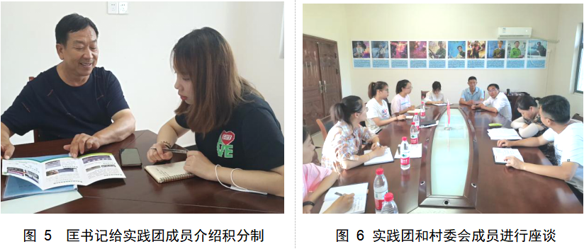却集村作为荆门市首个农村治理积分制管理示范村,通过积分量化式管理,将村民日常行为转化为可评价的具体指标,给每位村民建立一个“行为银行”,鼓励大家用积分兑换奖励。却集村村支书匡书记在和实践团开展交流时提到:“积分制在却集村的实行有效带动了村民的思想武装,村民自治能力不断提升,这一制度现已在漳河新区层面推广到各个村组社区”。实践团成员认真梳理并研究当地“积分制”的实行背景、规章制度、工作机制、经验成效等,纷纷表示:“希望能够在调研中认真学习、宣传推广当地乡村振兴的典型经验和做法,在乡村这个大课堂学到更多知识技能、增长更多本领才干。”