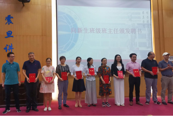 典礼第七项,副院长肖建忠、副院长程胜为新生班主任颁发聘书。