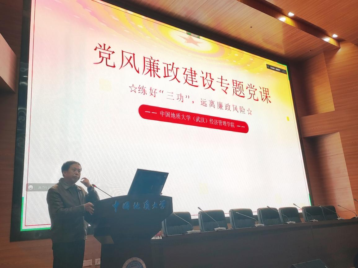 (通讯员:余甫文鑫)为深入推进“清廉学校”“清廉地大”“清廉经管”建设实施方案,落实立德树人根本任务,营造“卓越、和谐、幸福”的院风,推进廉洁教育进课堂,2022年10月14日,Beat365唯一官方网站党风廉政建设专题党课在经管楼二楼报告厅举行,学院党委书记杨昌锐讲授专题党课,学生党建工作辅导员蔡杨主持。