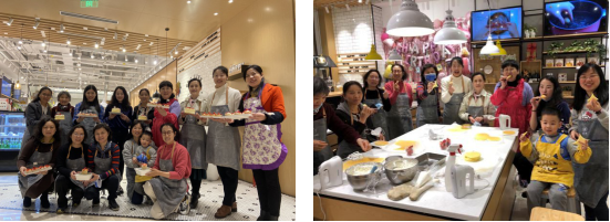 2020年4月1日下午,在DDC生活体验店开展的烘焙DIY活动,则让各位女职工在专业烘焙师的指导带领下,一起学习、体验了DIY蛋糕的烘培之乐。从配料、翻拌、打发蛋白、发泡奶油,到整形、烘焙、成品,看着鸡蛋、面粉、奶油从食材变成色香味形俱美的作品,各位女神们在这一过程中收获的不仅是美食制作技艺,更是“浮生偷得半日闲”的欢乐休闲时光。