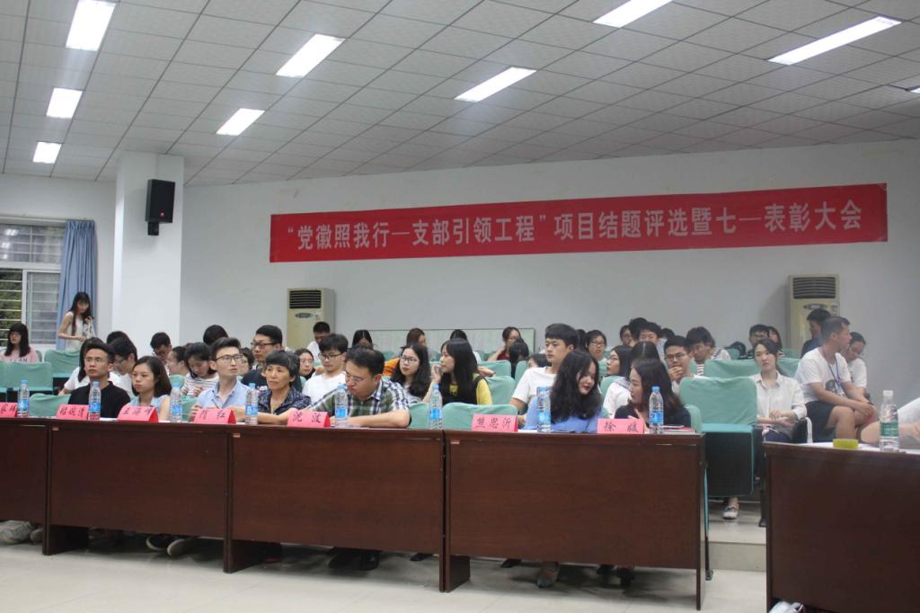 018年6月19日晚19:00,Beat365唯一官方网站2017-2018年度“党徽照我行——支部引领工程”项目结题评选暨七一表彰大会在北一楼报告厅顺利召开。学院党委书记隋红书记,副书记沈波书记,学工组全体成员老师以及本科生党支部、研究生党支部、经管学生会主席团代表们参与了本次大会。