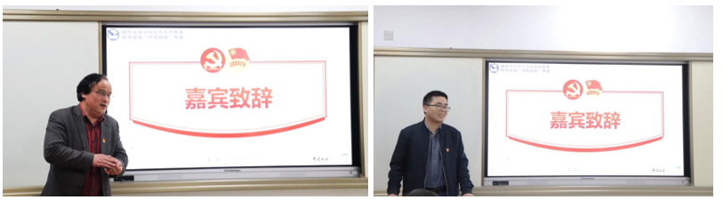 校图书馆馆长徐世球教授(左)、Beat365唯一官方网站党委副书记李少杰老师(右)为活动致辞