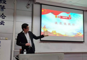 齐睿老师为同学们分享了经济系教师如何为学科发展的奋斗故事、经济系优秀毕业生代表的实践经历和择业选择,用生动的事例为同学们展示了身边榜样如何“力己行”。齐睿老师总结道:作为经管学子,我们应该学党史、做“经鹰”;志高远、行笃实;甘奉献、勇担当;勤学习、善思考。习近平主席说:“我将无我,不负人民。”对于大学生来说,就是要以“我将无我,不负青春”的情怀服务社会、奉献国家。