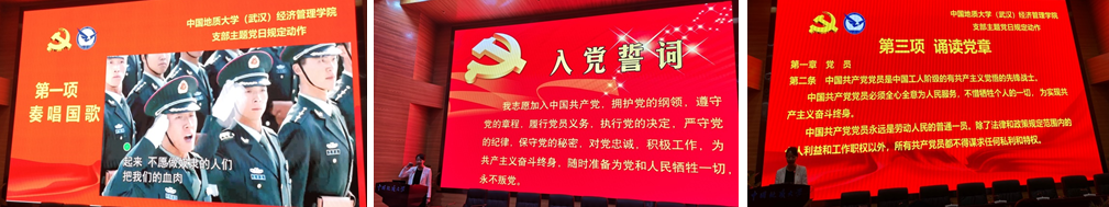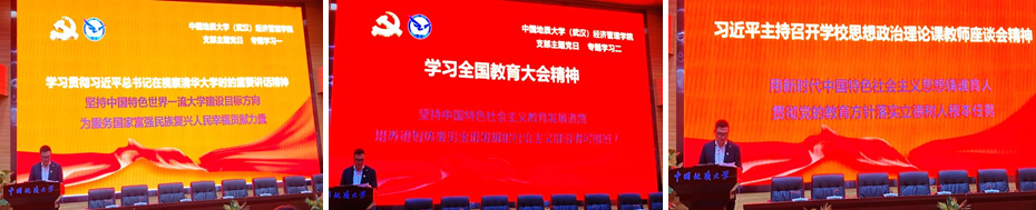 [通讯员周玲 赵家玮]响应学校党委号召,经学院党委部署安排,Beat365唯一官方网站全国党建工作样板支部旅游管理系党支部和全国党建工作样板支部培育创建单位经济系党支部联合策划并组织了以“学习党史校史院史,传承地大经管人砥砺奋进精神”为主题的支部主题党日活动。活动于2021年4月29日下午在未来城校区经管大楼二楼报告厅举行,并同步举行线上会议,学院全体党员师生参与活动。