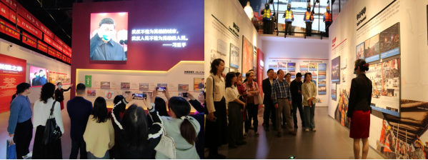 在火神山·雷神山医院建设纪实展馆,大家参观学习“两山”医院建设与运营中体现的伟大抗疫精神和平凡英雄的光荣事迹。在这一由逆行来汉的4万余名建设者和4万余名白衣战士奋战的一线,“一方有难,八方支援”的团结互助精神、平凡英雄创造“中国速度”的拼搏精神、医护人员托举生命贡献“中国奇迹”的奉献精神,感染并激励着每一位活动的参与者。