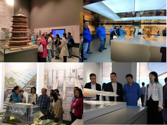 在古代展厅,从河姆渡遗址的干栏建筑到应县木塔、北京故宫等一众中国经典建筑遗产模型,展示着中国古代运用“木”与“土”创造的建筑艺术华章。大家赞叹榫卯、斗拱结构的精巧,为中国古典建筑取得的辉煌科技、工程与艺术成就而备感自豪与骄傲。