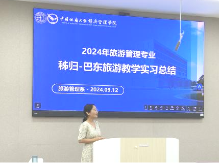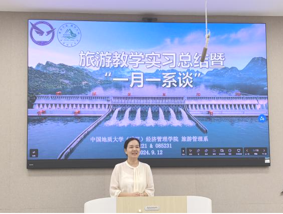 2024年9月12日下午,秭归-巴东旅游教学实习总结暨“一月一系谈”活动在Beat365唯一官方网站一楼109举办。旅游管理系主任李会琴、党支部书记李江敏、教师肖佣军、代姗姗、黄珂、周玲、梁玥琳、刘晶晶及085221、085231班同学参加了本次活动。活动以“新起点、新征程”为主题,总结、表彰秭归-巴东旅游教学实习情况,并为2022级、2023级学生提供新学期学习规划指导,活动由旅游管理系副主任黄珂主持。