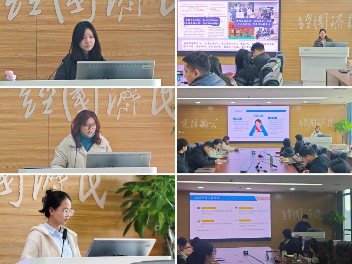 各组织负责人进行汇报,重点围绕工作思路、具体举措与实际成效展开,系统梳理了在思想引领、组织运行、活动开展、服务成长等方面的工作,客观分析了当前存在的不足,并就团队凝聚力提升、制度规范化建设、组织活力等方面提出了改进思路与具体措施。