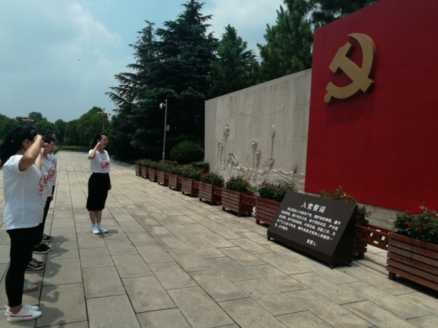 在宣誓墙前,我们整齐列队,举起右手,齐肩握拳,在李江敏老师的带领下,庄严地重温了入党誓词。重温入党誓词让每名党员都更加牢记共产党员的政治责任和历史使命,在铿锵有力的词句中,让我们更加深刻的体会到不忘初心、牢记使命的矢志不渝,唯有不断汲取奋进的力量,让自己努力发光发热,奋发有为,砥砺前行,才能为共产主义事业贡献自己的力量,切实发挥共产党员的先锋模范作用,永葆共产党员的政治本色。