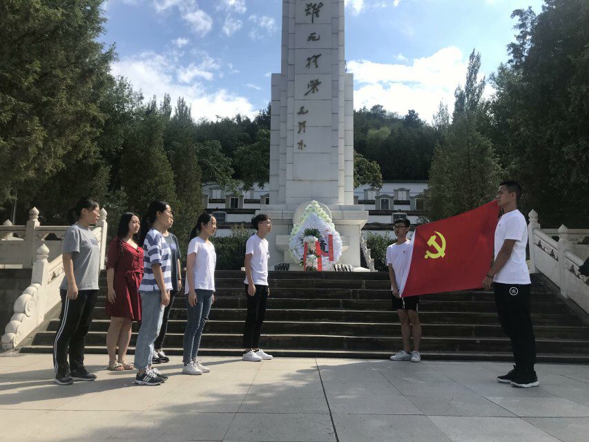 团队成员首先参观了陈列室,了解了烈士的生平事迹,随后在纪念碑前向烈士敬献花圈并默哀3分钟,并在王辉同志的带领下庄严的面向党旗宣誓。曾经这些革命英烈们为了中华民族的独立解放,祖国和平统一,甘洒热血,不幸空难逝世,70多年后的今天,我们后辈更要继承先烈遗志,牢记入党誓言。