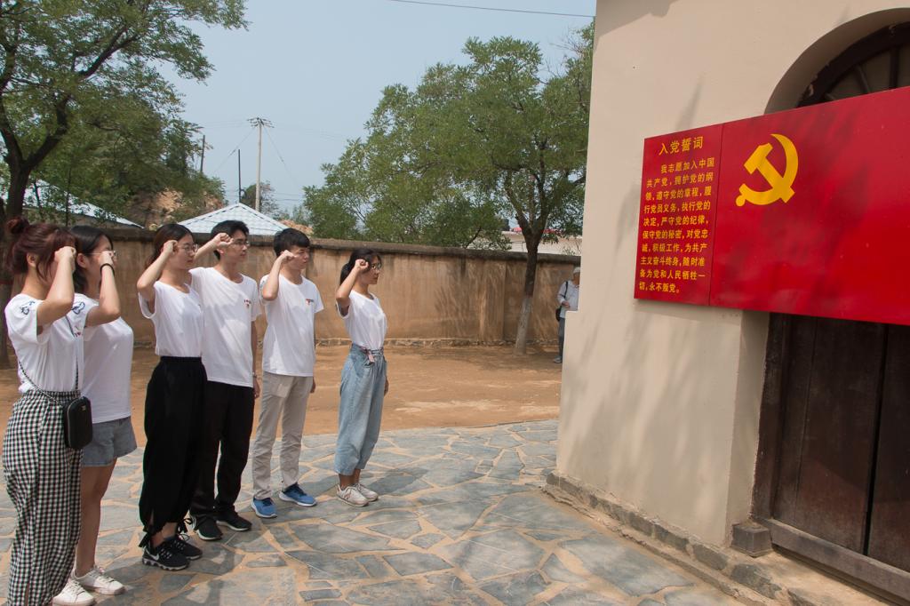 在中共中央旧址所在地,队员们参观了毛泽东、朱德、周恩来、刘少奇、董必武、任弼时等领导同志的故居以及七届二中全会会址,进一步了解了中国革命走向伟大胜利的历史进程。在七届二中全会会址门前,队员们面向党旗重温入党誓词,并合影留念。