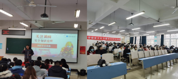 保卫处消防科的刘从贵老师耐心细致地讲解了消防知识、火灾案例、火灾特点、实验室安全、违章电器种类和危害、火场逃生的方法、灭火器材的操作方法等内容。同学们在回顾一件件触目惊心的案例的过程中真切体会到了火灾防范的重要意义,在认真观看老师示范灭火器的使用方法中学会了实用技能。听完本次讲座,同学们纷纷表示收获颇丰。