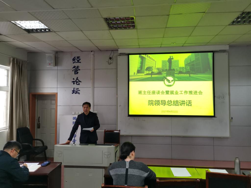 杨昌锐书记做总结讲话。一是要高度重视,积极推进2021届毕业生就业工作;二是要热情指导,班主任、辅导员要掌握每个学生的就业情况;三是要拓展单位,系主任、支部书记要积极联络行业内优质单位进校招聘;四是要精准就业,向有需要的学生推介各类就业政策;五是要完成目标,全员全力做好就业工作。