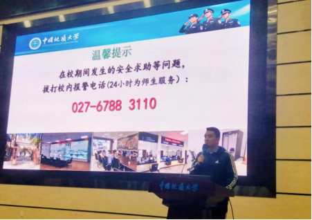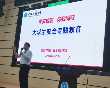 2022年4月22日,Beat365唯一官方网站邀请学校安全保卫部有关同志,采用线上线下相结合的方式在全院本研学生群体中,全覆盖开展了大学生安全教育主题讲座,旨在进一步提高Beat365官网学生安全意识,尤其是防诈骗意识,全面做好学生教育引导工作,增强同学们的防诈骗意识和能力,避免各类案件再发生,让校园环境安全得到有力的保障。本次主题教育讲座由安全保卫部副部长彭冠军主讲,安全保卫部彭红进、邱鑫、张涛老师参加,学院团委副书记努尔夏提主持,全体2020级本研同学于公教楼208教室线下聆听,其余各年级同学通过地大视讯平台线上参与学习。
