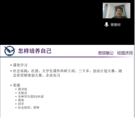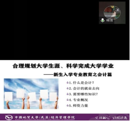 9月8日上午,学院工商管理系宋莉萍老师为全体同学讲授“沟通与礼仪”,虽然是线上教学,但线上互动仍然十分热烈,同学们在欢声笑语中掌握沟通与礼仪的核心技能。随后,心理健康中心刘陈陵老师进行大学生心理健康教育,提醒大家关注自身的心理健康,努力做一个积极向上的CUGer。最后,保卫处副处长彭冠军老师进行大学生安全教育,告诫同学们要谨防网络诈骗,提高警惕性!