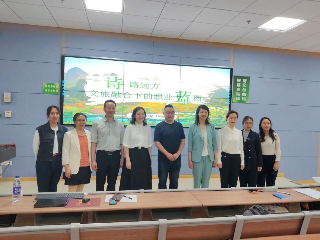 旅游管理专业分流宣讲暨校友分享会于当晚举行,邀请神州旅创文旅集团董事长兼CEO庄军,与同学们面对面交流文旅融合下的职业蓝图。李会琴老师解析新文旅产业转型趋势,结合“文旅融合”“数字旅游”等前沿方向,强调跨学科视野与实践创新能力。
