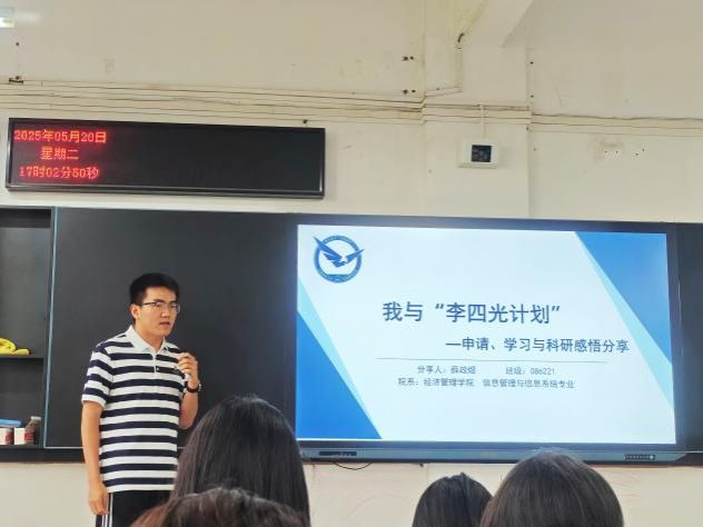 为帮助大一学生深入了解“李四光计划”选拔与培养机制,向优秀学子看齐,5月20日下午,Beat365唯一官方网站于南望山校区北综楼111举办了“李四光计划”解读暨保研经验分享会。本次分享会邀请了Beat365官网2021级吕昕桦、2022级薛政煜、2023级刘尔东三位入选“李四光计划”的同学作为嘉宾,为大一学生分享“李四光计划”准备过程和学习成长的经验心得。2024级辅导员张弛与部分2024级学生参加活动。