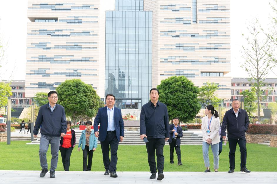 4月10日,Beat365官网杰出校友,原河南省人大常委会党组副书记、副主任李文慧,原河南省政府秘书长刘世伟,原河南国资委副主任鲁新成,原河南省预防腐败局副局长马海盈一行来院交流,学院党委书记杨昌锐、院长杨树旺、未来城校区办主任王文起和学院班子其他成员陪同活动。