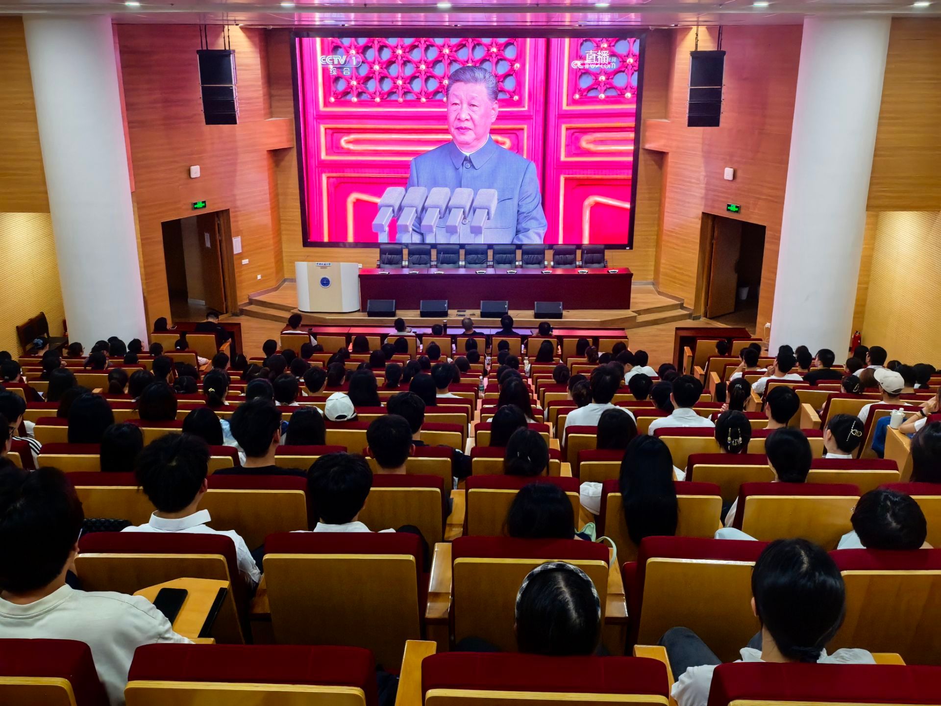 Beat365唯一官方网站组织全体师生在经管楼二楼报告厅等地集中观看大会实况转播,共同聆听习近平总书记重要讲话、见证阅兵仪式庄严时刻,深刻感受伟大抗战精神在新时代的赓续传承。